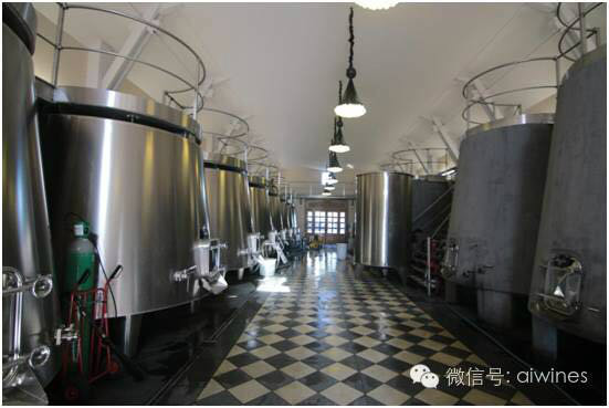 接下來(lái)的釀造車(chē)間,一組組巨型發(fā)酵罐整齊矗立其中,分不銹鋼和水泥兩種材質(zhì)。Augestin先生介紹:兩種材質(zhì)的發(fā)酵罐生產(chǎn)出的葡萄酒香氣、口感有差別,經(jīng)過(guò)調配后可使酒更復雜圓潤。