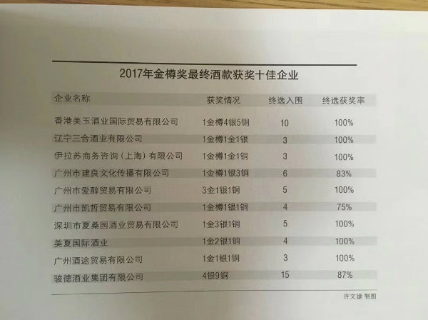 2017年第九屆金樽頒獎典禮上,《葡萄酒雜志》評選出了獲獎十家企業(yè),在這十個(gè)企業(yè)名字中,有比愛(ài)醇歷史悠久的,有比愛(ài)醇知名度高的,但是我們很驕傲,愛(ài)醇獲得3金、1銀、1銅,也是獲獎最多的進(jìn)口商!